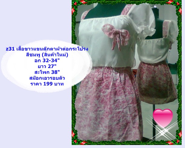2. z31 เสื้อสีขาวผ้าต่อกระโปรงสีชมพู