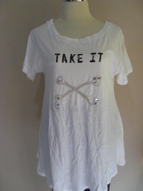 เสื้อยืดปักคริสตัลด้านหน้า เป็ยเสื้อตัวยาว ไซร์ s m ใส่ได้ค่ะ มีสองสี ขาว น้ำเงิน ราคา 380 บาท