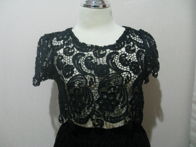 เสื้อตัวสั้นใส่เป็นคลุมทับเดรสเรียบ ๆก็น่ารักขึ้นมาแล้วค่ะ เป็นลูกไม้มีซิปซ่อนด้านหลัง มีสองสีนะค่ะ ครีม ดำ