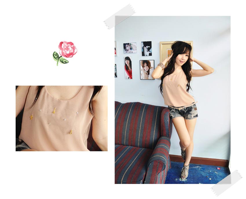 NEW เสื้อแขนกุดสีชมพูกะปิ มีปักมุกกับจี้ ข้างหวังเปนสายไขว้ น่ารักมากๆ ผ้าชีฟอง 2 ชั้นไม่ต้องใส่ซับในนะคะ