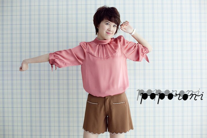ใหม่! เสื้อสีส้มอมชมพู งานเกาหลี ช่วงไหล่จับจีบเล็กๆ