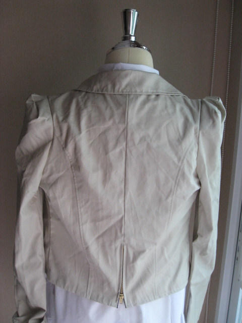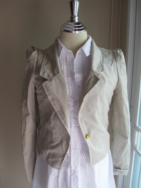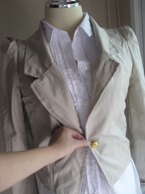 Blazer สีครีมไหล่ตั้งแนวเกาหลี กระดุมหนึ่งเม็ดสีทองด้านหลังตรงชายเสื้อมีซิปทองเหลือง ราคา 450 บาท