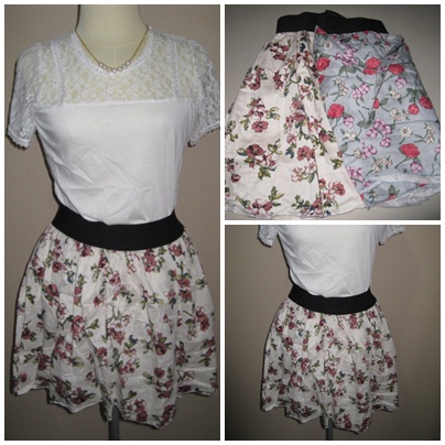 กระโปรงลายดอกไม้มีมาสองสี ครีม,ฟ้า ราคา 270 บาท ตอนนี้เหลือ ฟ้า ตัวเดียวนะค่ะ
