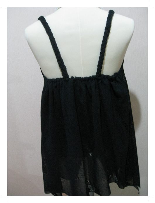 สายเดี่ญวสีดำที่แขนเป็นเปียผ้าคล้าลูกไม้ยืดๆลายกุหลาบ ราคา 250 บาท