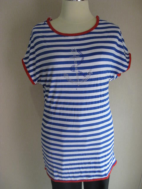 เสื้อยืดลายสมอเรือ สีน้ำเงินขาว ขลิบแดง ราคา 270 บาท--->250
