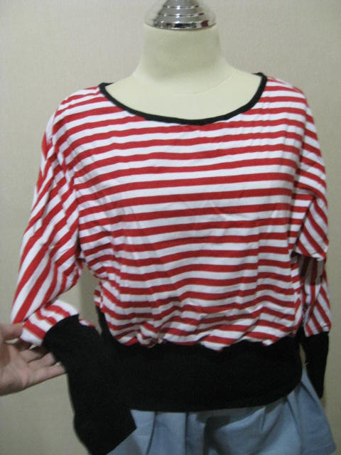 เสื้อแขนยาวลายทางขาวแดง น่ารักตรงด้านหลังมีโบว์ด้วยนะค่ะ ราคา 350 บาทจ้า