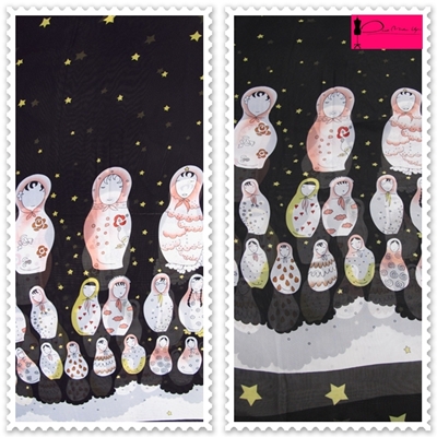 Details:ลายตุ๊กตาน่ารักๆ เก๋ตรงลายจะอยู่ที่ชายผ้าค่ะข้างบนจะเป็นรูปดาว เนื้อผ้าเป็นชีฟรองเบาๆจ้า