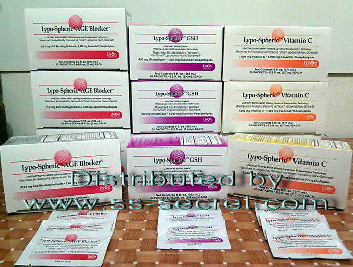 นอกจากวิตามินซี ที่ดังมากๆที่เมืองนอก ทางแลปผู้ผลิต Lypo-Spheric ยังมีสินค้าที่สามารถใช้เทคโนโลยี liposomal delivery ได้อีกสองตัวคือ AGE Blocker สุดยอด anti-aging และ GSH (Glutathione) super anti-oxidant ที่ช่วยเสริมระบบภูมิคุ้มกัน อีกทั้งยังช่วยลดการผลิตเม็ดสีทำให้ผิวขาวขึ้น “และขอย้ำค่ะว่าได้ผลดีเท่า หรือ ดีกว่า การฉีดเข้าเส้น” จากประสบการ์ณลูกค้า และประสบการณ์ส่วนตัวที่เคยลองมาแล้ว ปลอดภัย และได้ผลกว่า