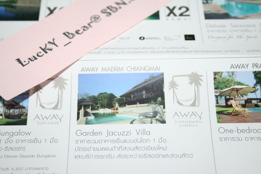 บัตรนี้ซื้อจากงาน Discovery Thailand and Discovery World 2009 ราคานี้รวมอาหารเย็นแบบขันโตก 1 มื้อ, บัตรเข้าชมแพนด้าที่สวนสัตว์เชียงใหม่ และบริการรถรับส่งระหว่างรีสอร์ทและสวนสัตว์ด้วย