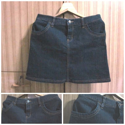 10] กระโปรงยีนส์ผ้านิ่ม FQ&L สีน้ำเงินเข้ม ไซส์ M-L สะโพก 37-38 => 400 บาท