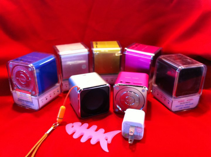 เป็นลำโพงที่ฟังจาก Micro SD และ สามารถต่อเป็นลำโพง คอมพิวเตอร์ มือถือได้ เสียบหูฟังได้ ชาร์ตไฟ 3 ชม. เล่นได้ต่อเนื่อง 3-6 ชม. แล้วแต่การใช้งาน หรือว่า จะชาร์ตไปฟังไปก้อได้ ราคา 479 บาท