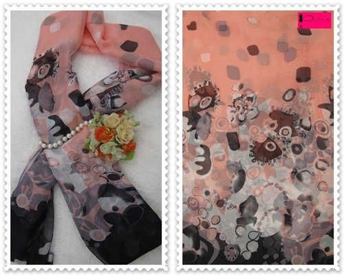 Details : ชีฟรองเบาๆสีโอรส ลายกราฟฟิคเก๋ๆ ตรงชายผ้า