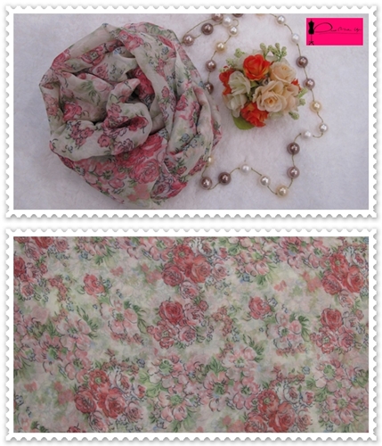 Details : ชีฟรองเนื้อนิ่ม ลายดอกกุหลาบสีชมพู Vintage มากๆจ้า