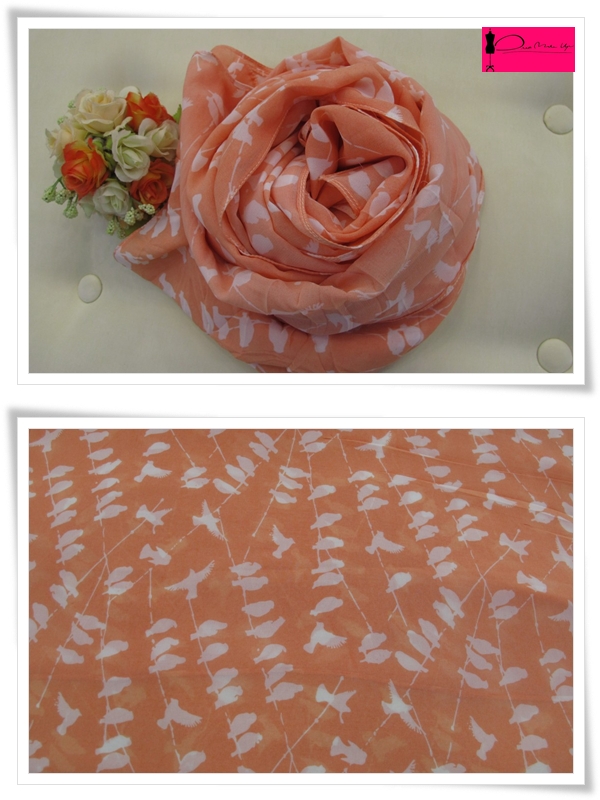 Details : ชีฟรองเนื้อนิ่ม ลายนกน้อย พื้นสีส้ม