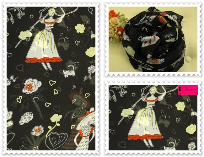 Details : ชีฟรองเนื้อทราย ลายผู้หญิงใส่ชุดกิโมโน (ลายจะอยู่ที่ชายผ้าด้านยาว) ลายนี้จะ Art เหมือนภาพวาดศิลปะเรยจ้า