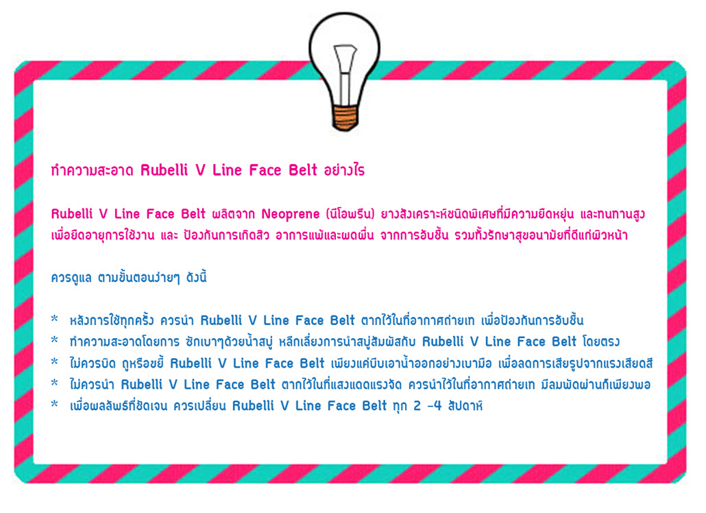 Rubelli V Line Face ( ลูล์เบลลี่ วี ไลน์ เฟช ) เป็นผลิตภัณฑ์ที่ได้รับความนิยมและมียอดจำหน่ายสูงสุด ในกลุ่มผลิตภัณฑ์ยกกระชับ ปรับหน้าเรียว ด้วยผลลัพธ์ที่พิสูจน์ได้ จึงได้รับความนิยมอย่างสูง ในประเทศเกาหลีใต้ การันตีความอินเทรนด์จากรายการบิวตี้ ทอลก์โชว์มากมาย นิตยสารบิวตี้ แฟชั่น และไลฟ์สไตล์ชั้นนำ นวัตกรรมใหม่ ที่เรียกได้ว่าสั่นสะเทือน วงการศัลยกรรมเกาหลี ตอกย้ำด้วยการยอมรับทางการแพทย์ กับแพทย์ผู้เชี่ยวชาญด้านผิวหนังและ ศัลยกรรมตกแต่ง ชื่อดังมากมายใน ประเทศเกาหลีใต้ จึงสร้างกระแสความนิยมอย่างต่อเนื่อง กับผลลัพธ์ชัดเจนที่พิสูจน์ได้