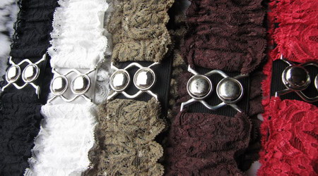 A01 เข็มขัดลูกไม้ยืดเส้นใหญ่ มีสีแดง ดำ ขาว น้ำตาลเข้ม น้ำตาลอ่อน ชมพู ครีม 230.-