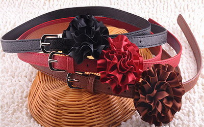 A10 เข็มขัดประดับดอกไม้ผ้าชีฟอง มีสีดำ น้ำตาล เทา 340.-