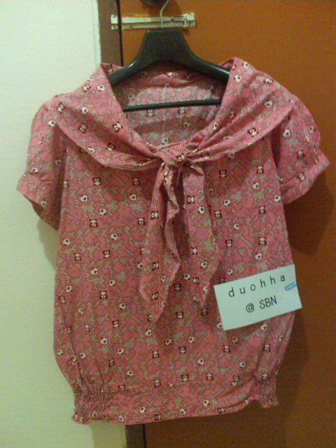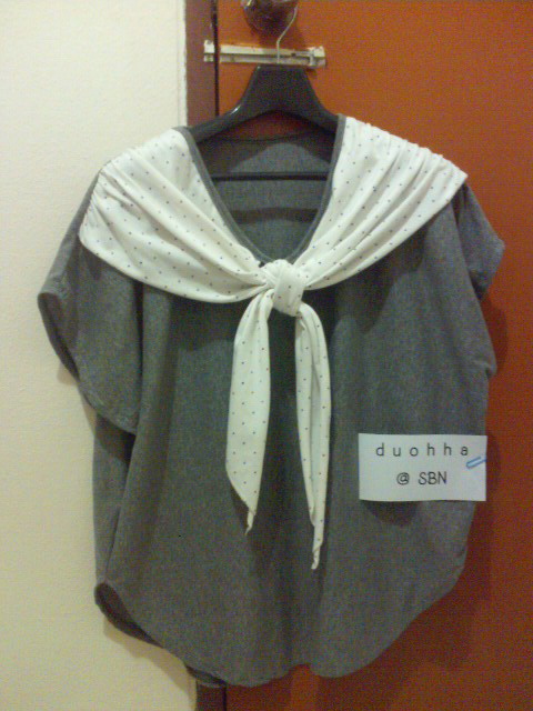 ตัวที่ 3 เสื้อ oversize อกได้ถึง 50 ยาว 24 ที่คอเป็นผ้าพันคอแบบเย็บติดสีขาวลายดาวเล็ก ๆ ไ้ด้มาจากในนี้ค่ะ ใส่ครั้งเดียว แต่แฟนไม่ชอบเลยปล่อยค่ะ ในรูปผูกโบว์ไม่ค่อยสวย ใครผูกโบว์เป็น น่าจะดูดีกว่านี้ค่ะ