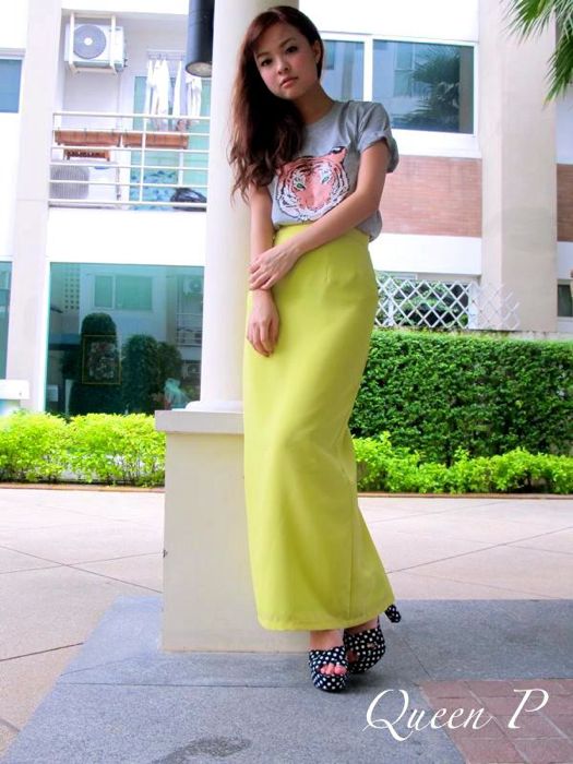 Detail : กระโปรงยาวทรงตรงสีมะนาว ผ่าหลัง