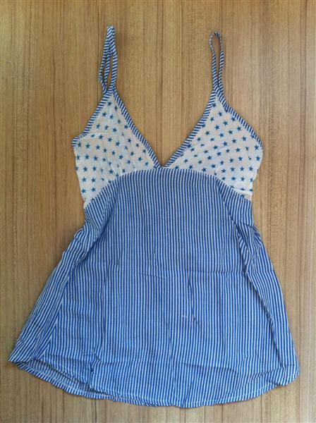 02 เสื้อสายเดียวสีฟ้า ทำเป็นสายคล้องคอก็ได้นะคะ ได้2แบบ หลังเป็นสม็อก