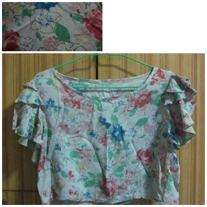 8] เสื้อตัวสั้น ผ้าฝ้าย ลายดอก => 150 บาท