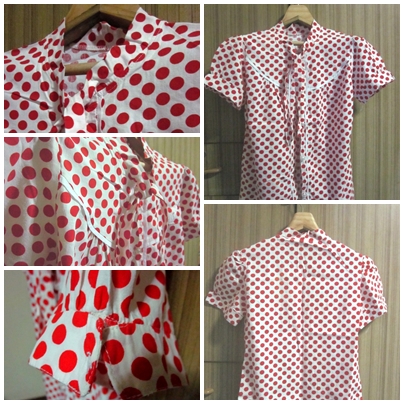 9] Red Polka Dot คอจีน เหมาะกับสาว s-m แกะกระดุมหลอกที่แขนออก => 100 บาท