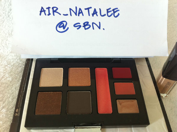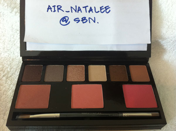 เซทนี้บรรจุมาในถุงผ้ากำมะหยี่ พร้อมกับ lip gross 1 แท่ง ส่วนใน palette มี 2 cheek colours, 6 eye colours