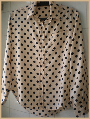 4. เสื้อแนวตัวโคร่ง The Face สีโอรสอ่อน เสื้อแขนยาวลายจุดเล็ก น่ารักมากค่ะ ผ้ามีน้ำหนักและทิ้งตัวได้ดี ใส่สบายไม่ร้อนค่ะ