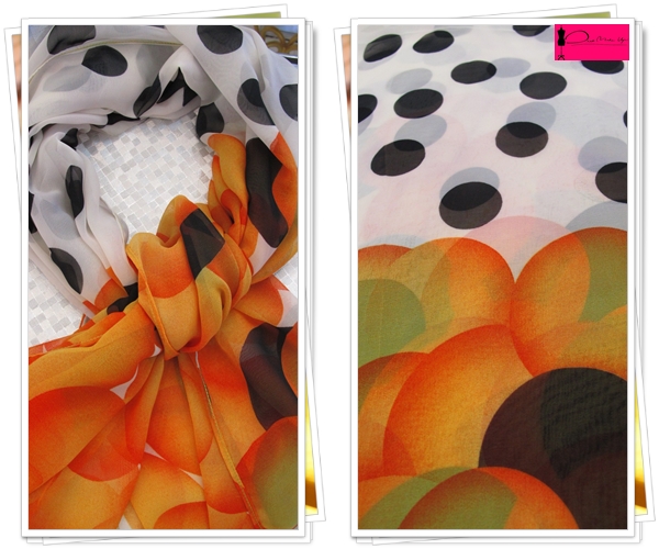 Details : ลายจุดดำ พื้นขาว เพิ่มความเก๋ด้วยลาย วงกลมสีส้มจี๊ดๆๆที่ชายผ้าจ้า