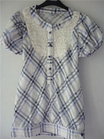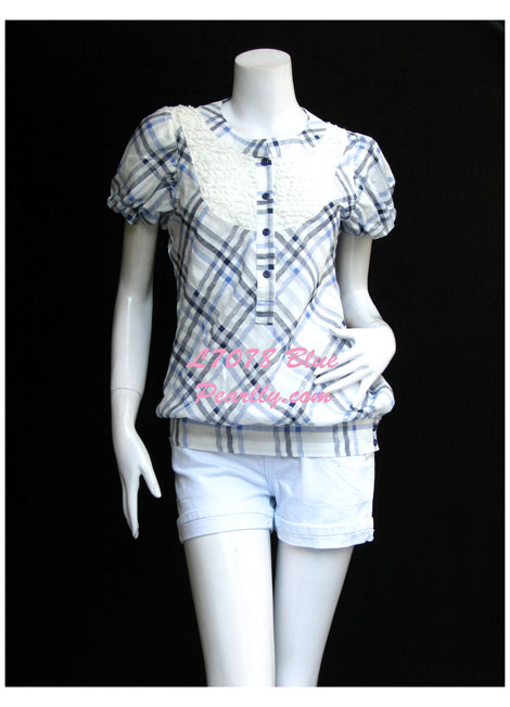 เสื้อผ้าป่านลายสก๊อต ผ้า สวยมากๆๆๆๆๆแขนฟักทอง เอวจั๊ม ติดกระดุม ด้านนห้าแต่งระบายๆๆๆๆ