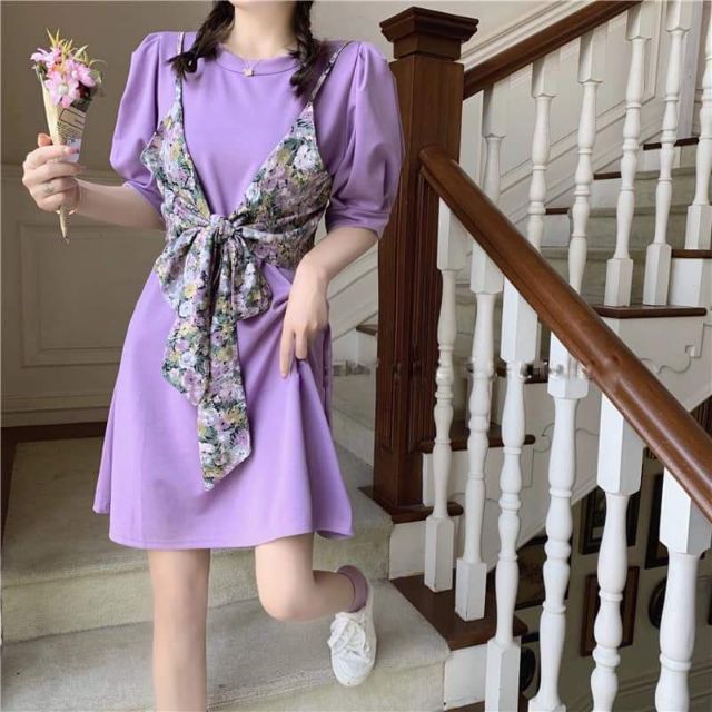 Dress V สีชมพูกระปิ/สีน้ำเงินอมฟ้า