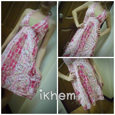 เดรสผูกคอผ้าตัดต่อลายดอกสีชมพู หวานๆ ตกแต่งกระดุมช่วงหน้าอก และกระเป๋าด้านข้าง 2 ข้าง ด้านหลังเป็นสม็อค มือสอง(ใส่ 1 ครั้ง) ราคา 150 บาทถ้วน
