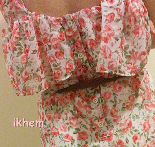 จั้มสูทผ้าชีฟอง ลายดอก มีระบายตรงหน้าอก ด้านหลังเป็นกระดุม (ไม่รวมเข็มขัด)