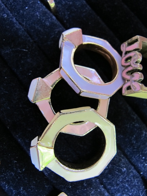 แหวนรูปแหวนสามมิติ 3วง ขายเป็นเซทค่ะ มีสีเหลือง ม่วง ชมพู งาน hand made 500