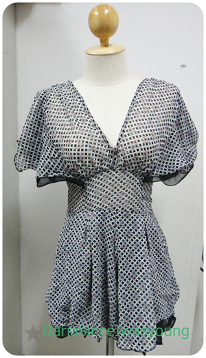 7. เสื้อซีทรูสีน้ำเงินเข้ม ลายจุด