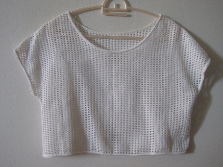 T004. 200 b. เสื้อตาข่ายสีขาว ตัวสั้น เอาไว้ใส่ทับกับเสื้อแขนกุดสายเดี่ยว เก๋ๆ เลยค่ะ อก 38 นิ้ว ลำตัว 38 นิ้ว ยาว 15 นิ้ว