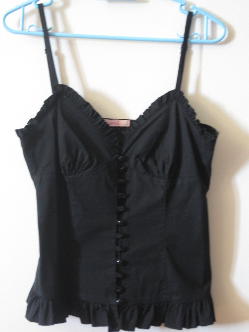 T014. 200 b. เสื้อสายเดี๋ยวเข้ารูปสีดำสุดเปรี้ยวว ใส่แล้วเกิดมากค่ะ sexy นิด ๆ แม่ค้า recommend ค่ะ มีเล่นระบายตรงช่วงอกกะชายเสื้อด้วยค่ะ