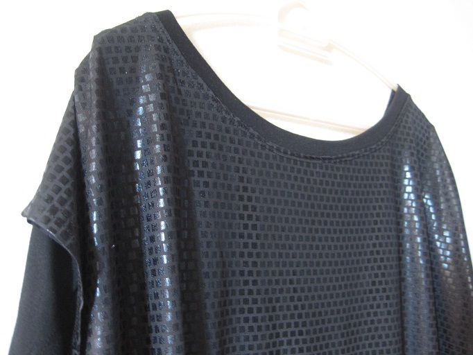 T012. 200 b. เสื้องานฮ่องกงลายเสื้อผ้ามัน ดีเทลเก๋มากค่ะ แขนสองข้างไม่เท่ากัน ฝั่งสั้นประดับบั้งเก๋มากกกกกค่ะ ใส่กับเลกกิ้งสวยมากก ขนาด freesize ยาว 32 นิ้ว