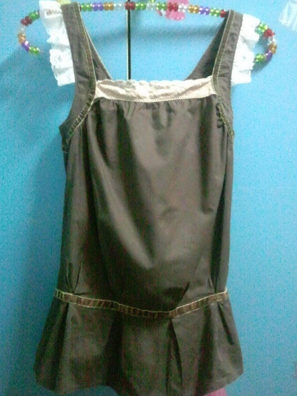เสื้อน้ำตาลสายเดี่ยวลูกไม้ จั้มเอว น่ารักมากๆค่ะตัวนี้ 80 บาทsale >> 60