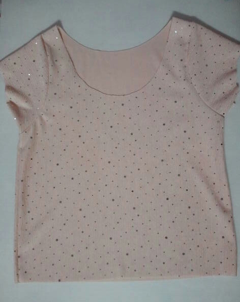 เสื้อสีชมพูโอรสหวานๆ ดีเทลเป็นจุดกลิทเตอร์วิ้งๆ น่ารักมากค่ะ อกก่อนยืด 32" ความยาวเสื้อ 19" 150 บาท
