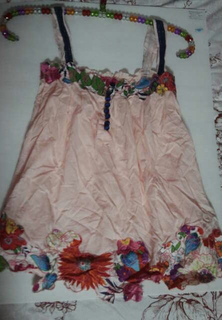 แขนกุดชมพูอ่อนๆ แต่งดีเทลดอกไม้ หวานน่ารักค่ะ อกได้ถึง 35" ความยาว 24.5" 120 บาท