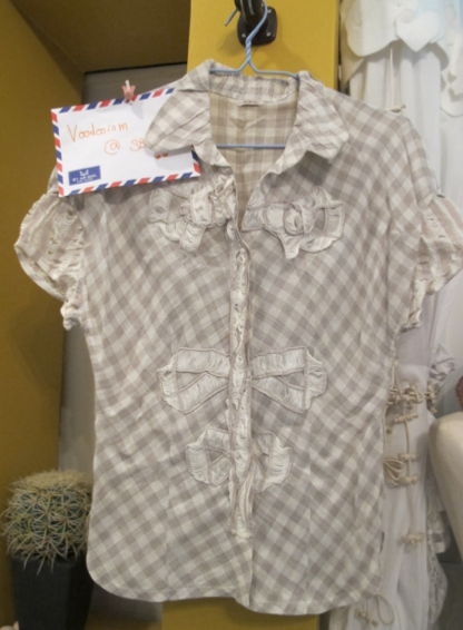 มือหนึ่งค่ะ เสื้อเชิ๊ตผ้าฝ้ายแขนยาว size M กระดุมไม้ อารมณ์วินเทจ จาก เจเจ ค่ะ มีกระดุมอะไหล่ให้นะค่ะ 500 บาทค่ะ