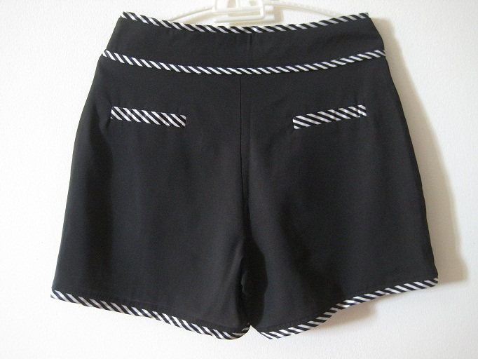 B005. 150 b. กางเกงขาสั้นสีดำ เล่นลายตัดขอบเก๋ๆ ผ้าใส่สบาย ทรงสวยค่ะ เอว 30 นิ้ว สะโพก 42 นิ้ว ยาว 16 นิ้ว