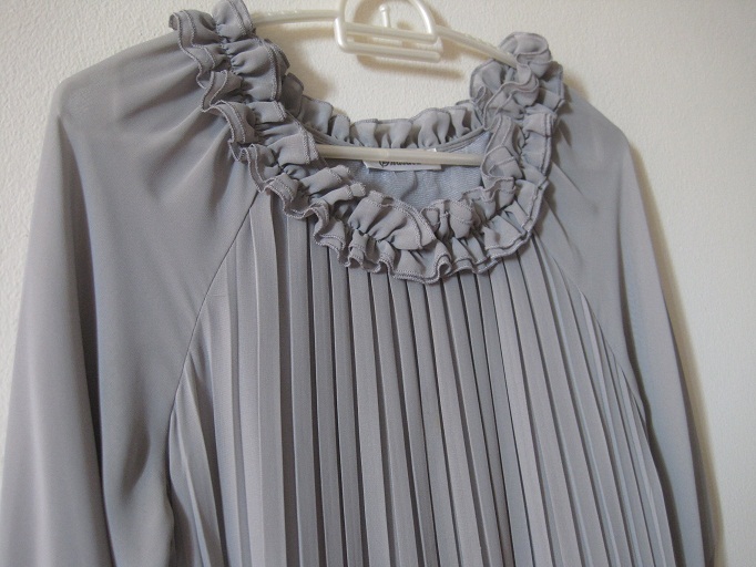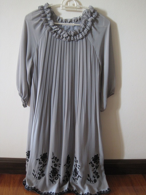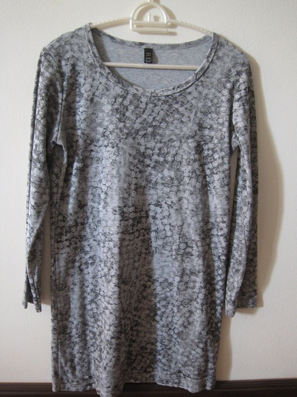 T011. 150b. เสื้อยาวสีเทาของ united color of beneton เล่นลวดลายตรงคอเก๋มากค่ะ เป็นเดรสซีทรูผ้านิ่มค่ะ เป็นขนาด free size ยืดตามตัวค่ะ