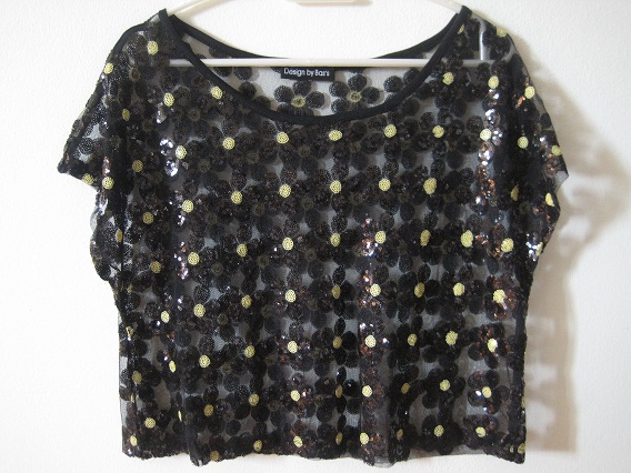 T007. 150b. เสื้อซีทรูสีดำ ประดับด้วยดอกสีเหลือง ตัวสั้น ใส่ทับสวยๆ หรือใส่ตัวเดียวก็เก๋ค่ะ อก 42 นิ้ว ลำตัว 40 นิ้ว ยาว 18 นิ้ว