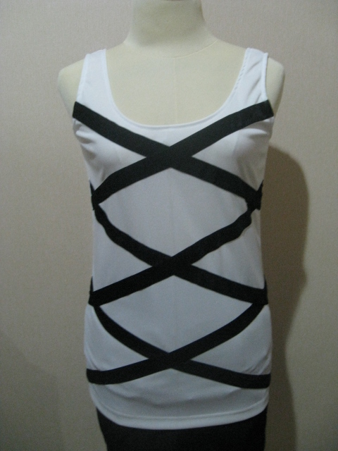 เสื้อลุกไม้แขนกุดสีขาว เดินเส้นเป็นรูปโบว์สีดำด้านหหน้า ราคา 380 บาท