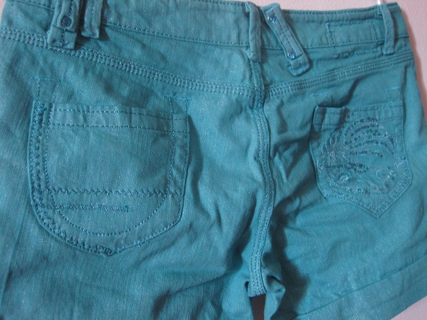 B010. 150 b. กางเกงขาสั้ยยีนส์สีฟ้าอมเขียว กระดุมคริสตัลล ตกเเต่งด้วยเลื่อมรอบกางเกง สวยมากๆค่ะ