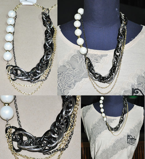 สร้อยที่ถูกร้อยจากมุกสลับกับ โซ่และเพชร(เทียม) ดูเก๋ไก๋ไม่ ว่า จะ ใส่ ไปในสถานการณ์ใดก็ดูทันสมัยค่ะ