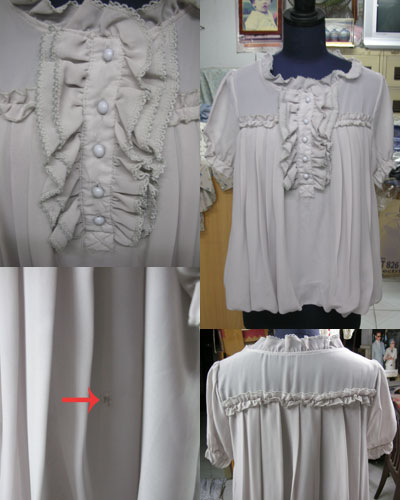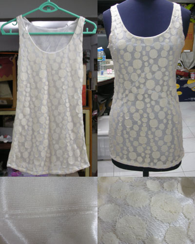 1. เสื้อกล้ามสีครีม มีลายตามภาพเลยนะค่ะ เผอิญซับในมีรอยด้านนิดนึงค่ะตามภาพ